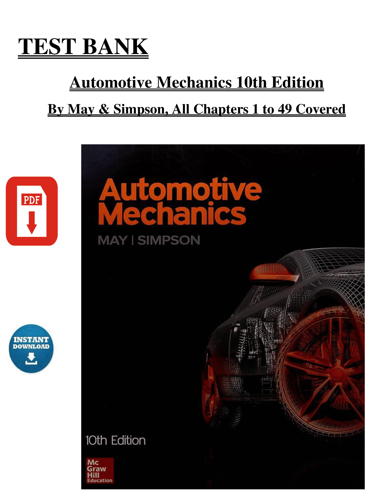 test bank Automotive Mechanics 10th Edition PDF, May Simpson automotive mechanics test bank download, automotive technology exam questions PDF, automotive mechanics multiple choice questions PDF, car mechanics test bank PDF, automotive diagnostics test bank download, automotive engineering practice exam PDF, McGraw Hill automotive mechanics 10th edition test bank PDF, automotive repair and service test questions PDF, auto mechanics training test bank PDF