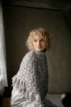 In Finnish, ”laine” means a wave, making it a perfect name for this design, which features a lovely wavy cable pattern reminiscent of a sandy shore sprinkled with seashells. This DK weight garment is worked in the round and finished with a tassel fringe.