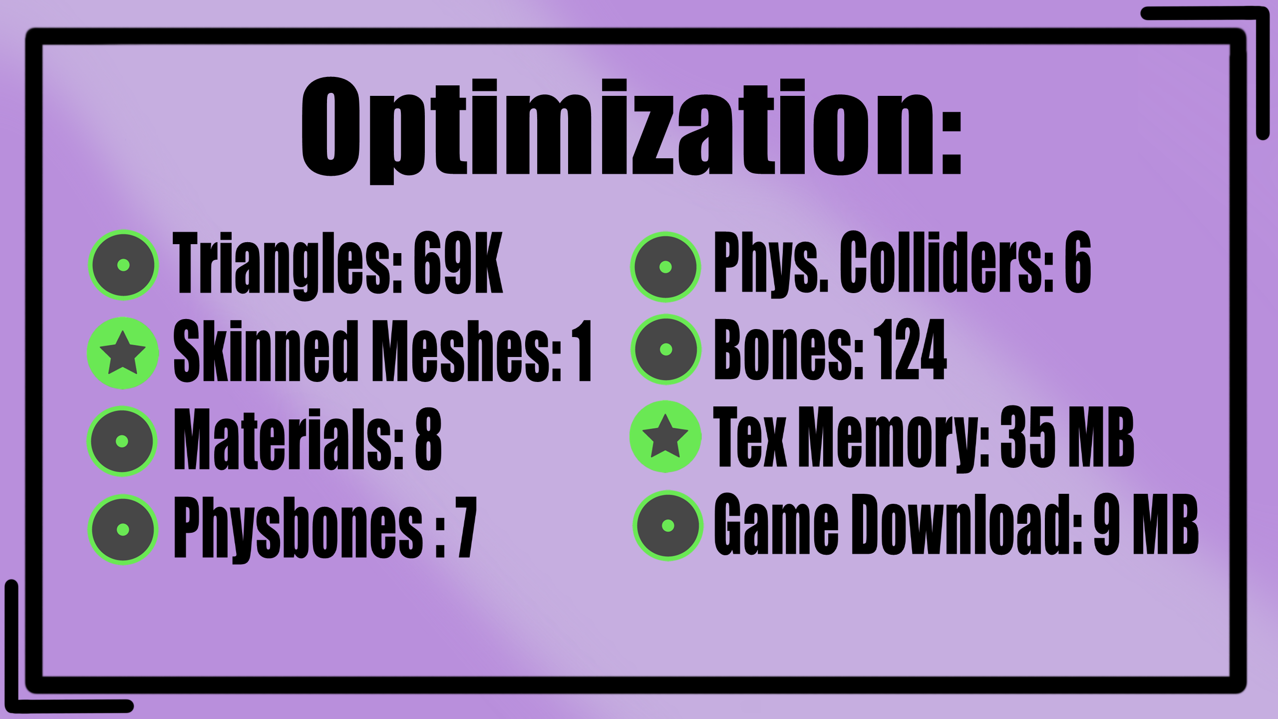 - No refunds. You have bought a digital product. You are responsible for reading the description of the avatar and checking the version you are purchasing. My avatars/assets are always showcased as they are in game.