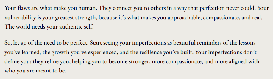 - Embrace her imperfections and finally feel free