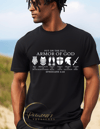 Gear up in faith with our “Full Armor of God” Men’s T-Shirt—a bold and empowering design inspired by Ephesians 6:10-18. This shirt features detailed illustrations of the spiritual armor: the Belt of Truth, Breastplate of Righteousness, Shield of Faith, Helmet of Salvation, Sword of the Spirit, and Shoes of Peace, paired with descriptions for each piece.