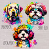 Small breed dog, graffiti art, paint splash art. Cockapoo/Cavapoo, Yorkshire Terrier, Shih Tzu, French Bulldog, Lurcher, West Highland Terrier, Maltese.