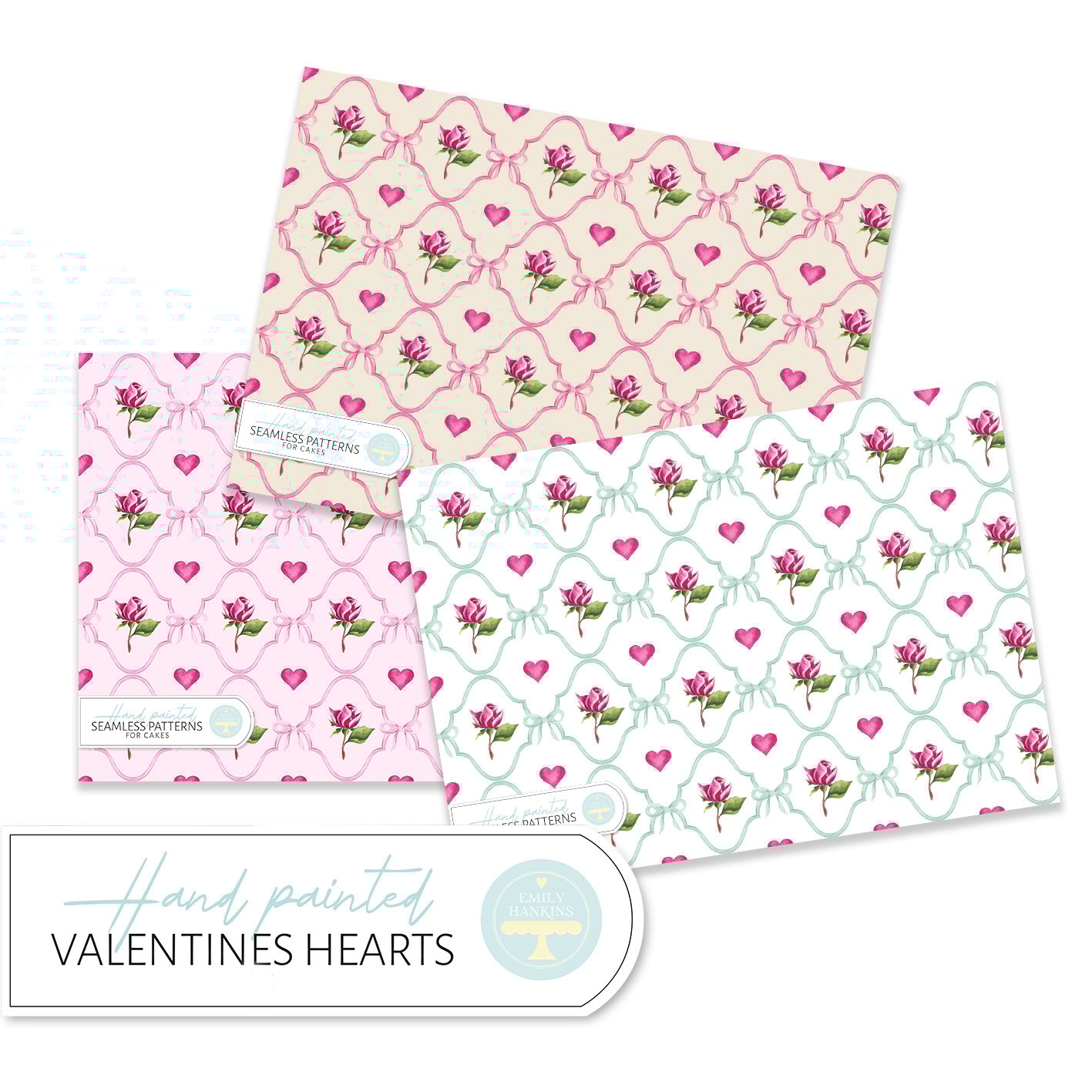 VALENTINES HEARTS AND ROSES - MINI COLLECTION BUNDLE is a collection of all of my valentines hearts and roses seamless pattern designs specifically created for use on cakes - perfect for spring birthdays, spring weddings, Easter goodies, Mothers Day and more!