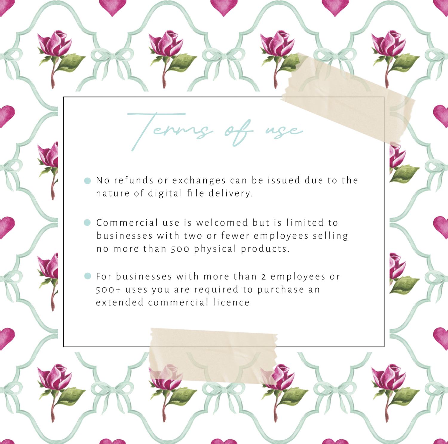 You may not upload or sell my designs to 'print on demand sites' (Such as Redbubble, Spoonflower or Zazzle etc) Or use my designs to sell products on Shien, Temu, AliExpress or other marketplaces. This does not include uploading files to external printing companies if you do not have access to an edible printer at home.