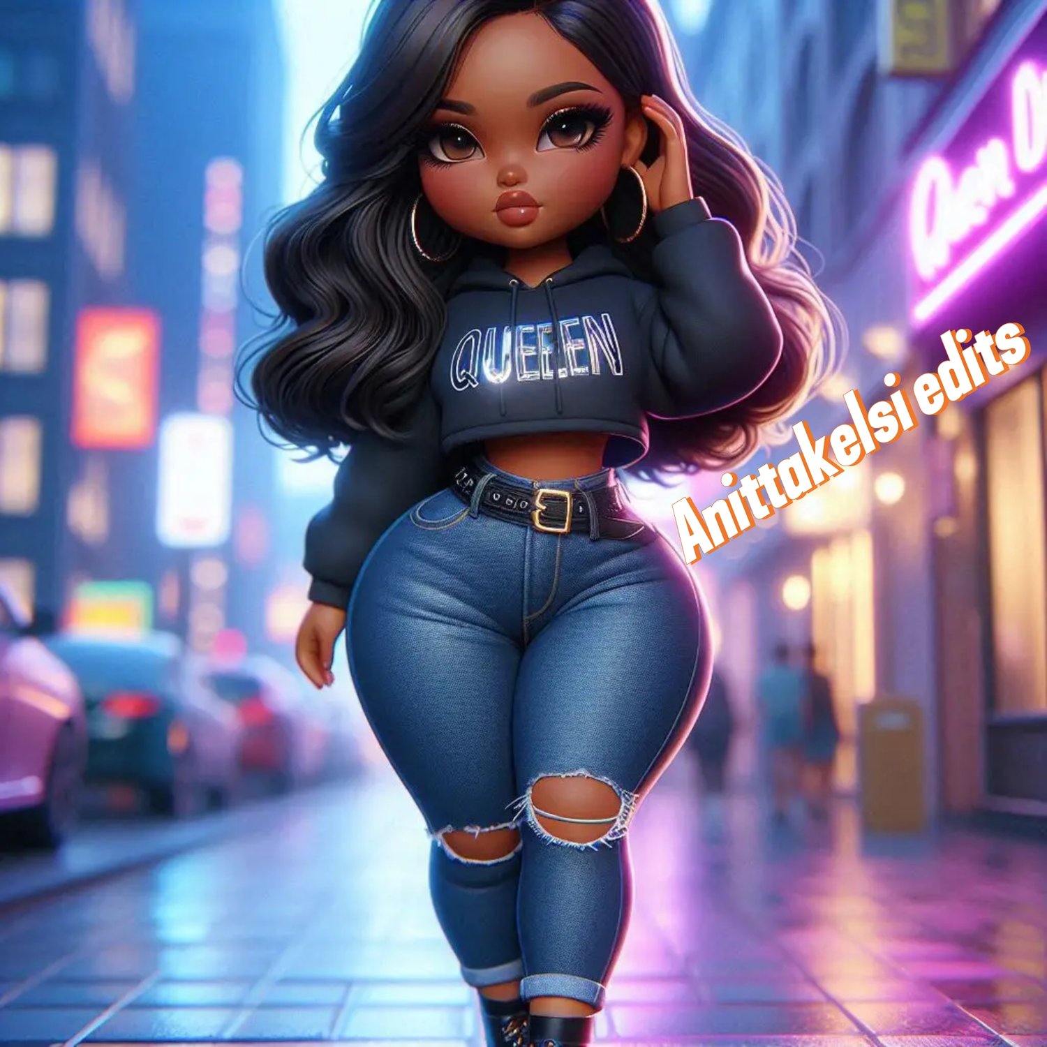 Bring bold beauty and style to your collection with this stunning curvy chibi queen digital artwork. Perfect for wallpapers, prints, or creative projects, this high-quality piece captures confidence, glow, and elegance in every detail.