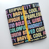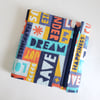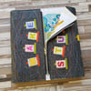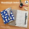A custom jacket for your sketchbook. A jacket to keep everything you need to plan, draw, write, and sketch. This pattern takes you through the steps to create a tailor made jacket that wraps around your sketchbook and zips up to keep all the extra papers and notes inside. The zip pocket on the inside holds pens, pencils, and erasers.