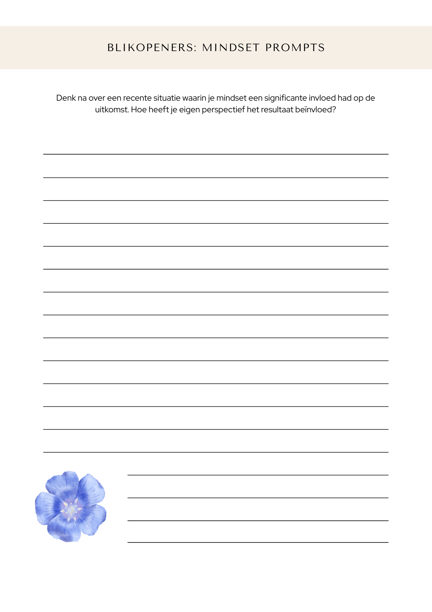 Het leven raast voorbij. Je hoofd zit vol gedachten die in cirkels draaien, overtuigingen die je vasthouden, patronen waar je niet uitkomt. Dit printbare dagboek helpt je even te stoppen, afstand te nemen en anders te kijken.