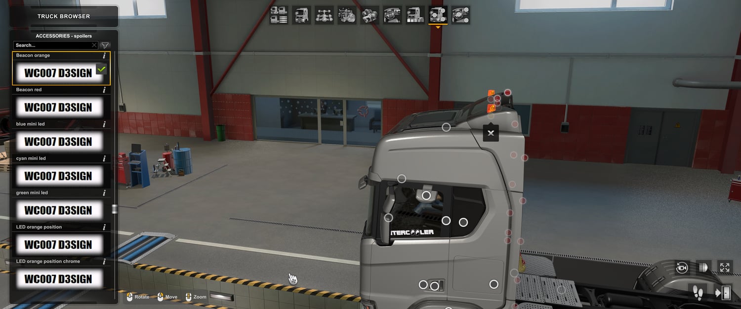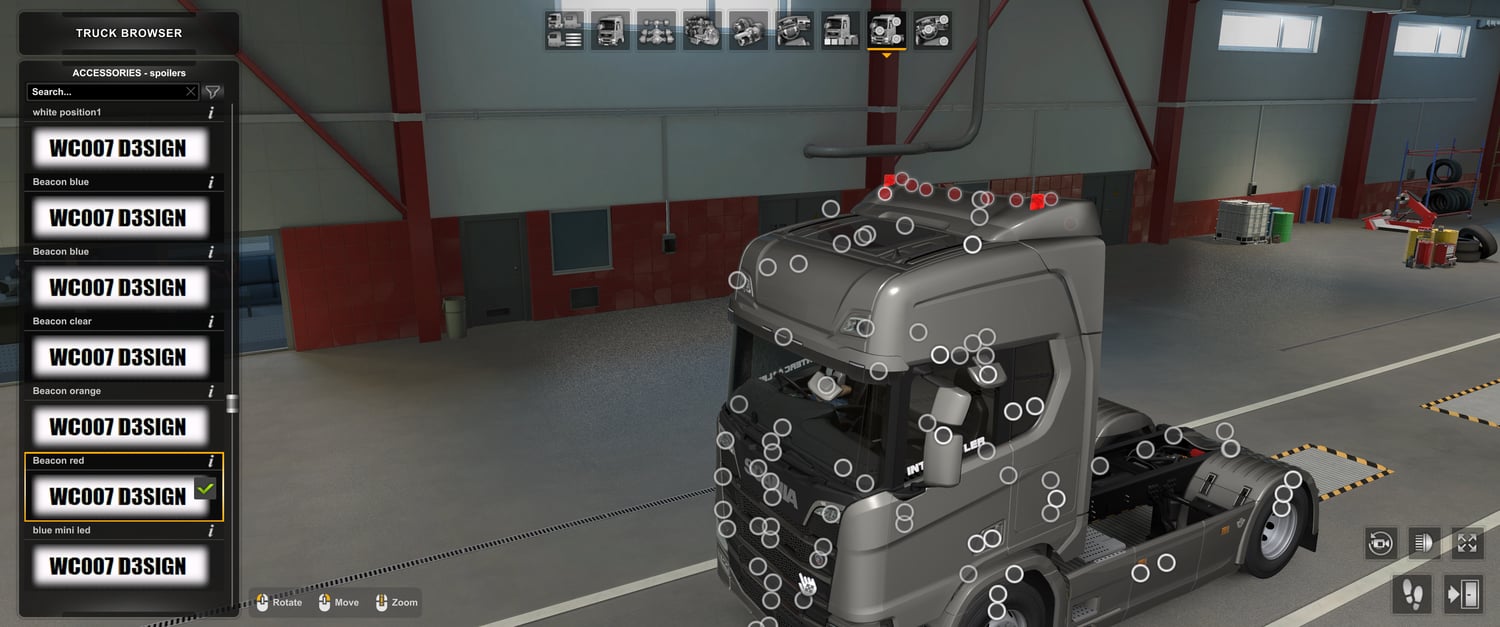 Scania short spoilers with beacon slots works only with Scania no spoiler mod V1 or Scania no spoiler mod V2 and not work with and Base game Scania truck