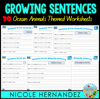 Transform your students' writing with this set of 30 ocean animals-themed sentence-building worksheets! These worksheets guide learners step-by-step to expand simple sentences into detailed and descriptive ones. Each worksheet begins with a basic sentence (e.g., "Dolphins swim") and provides prompts to help students grow their sentences by adding adjectives, adverbs to describe the action and phrases for where, when, and why. This resource encourages creativity, builds sentence fluency, and strengthens writing skills while incorporating exciting ocean animal themes like dolphins, sharks, crabs, pelicans, and more! Perfect for literacy centers, independent practice, or homework. Use these worksheets to bring variety and creativity into your classroom while helping students become confident and creative writers!