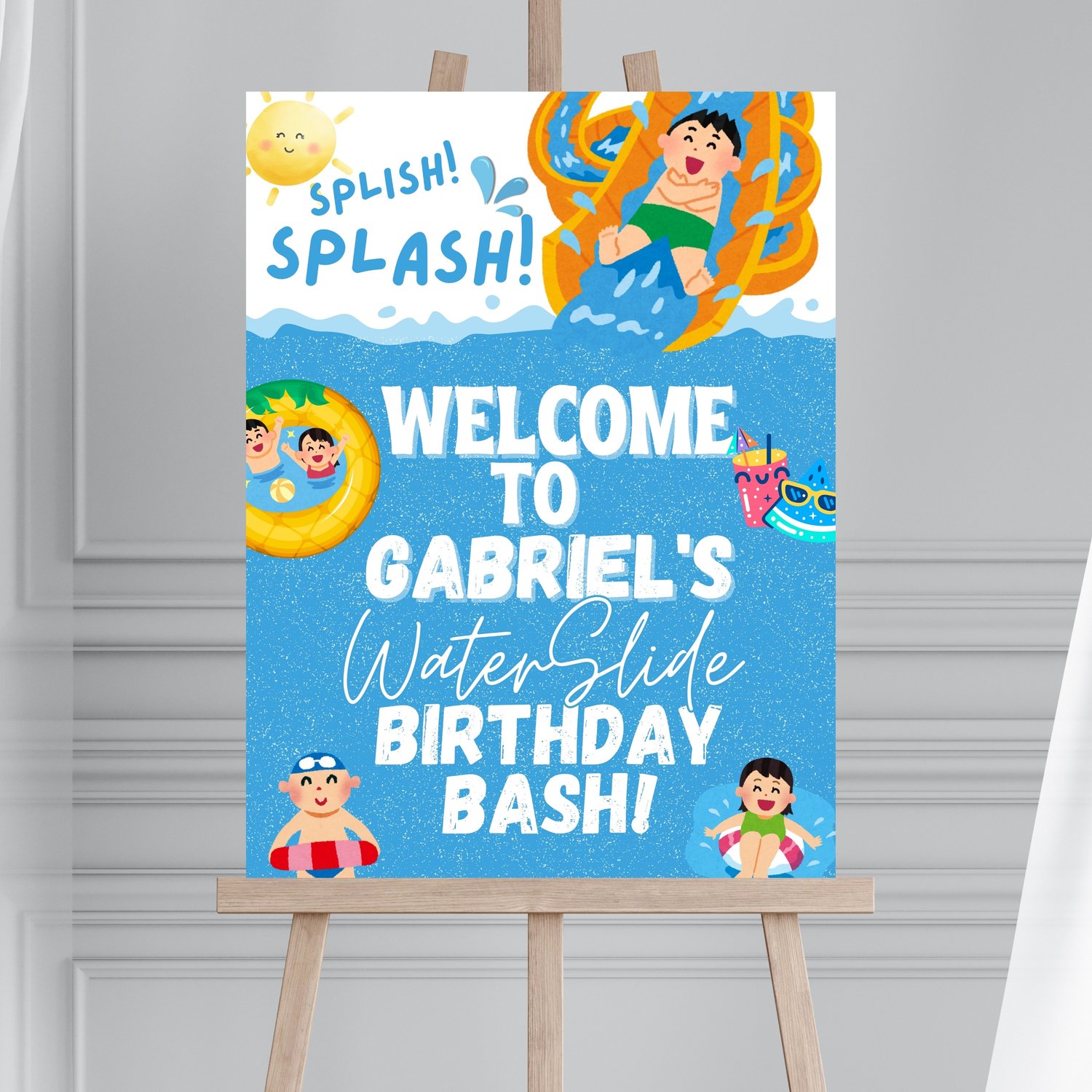 Make a Splash with Our Summer Pool Party Waterslide Welcome Sign Template!