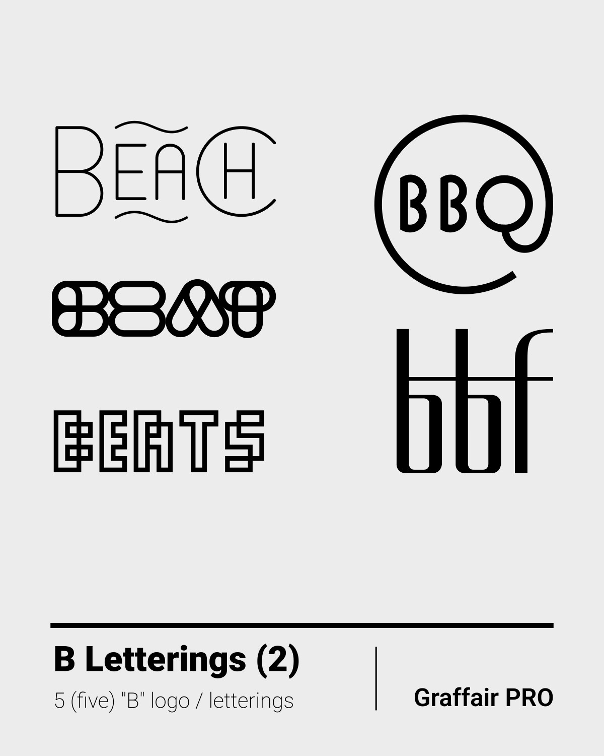 B Letterings (2): The second set of "B" logo/letterings with 5 (five) designs. These letterings are included amongst 800 ones in the "800 SVG Letterings" bundle edition.
