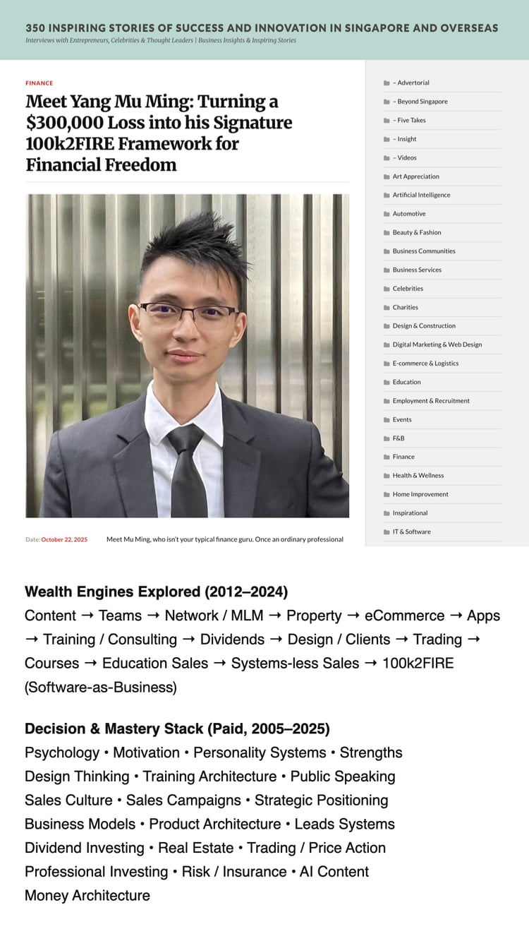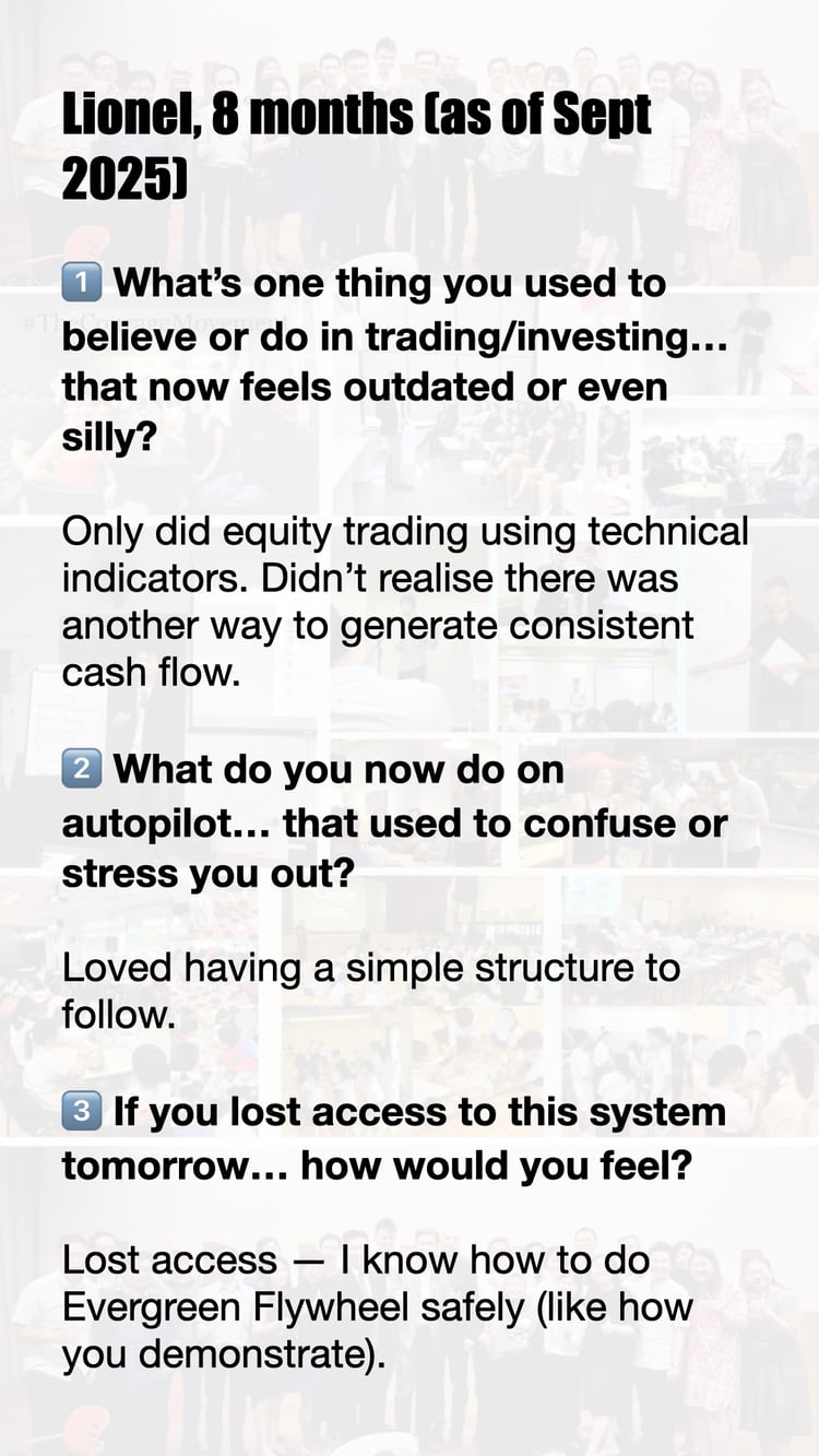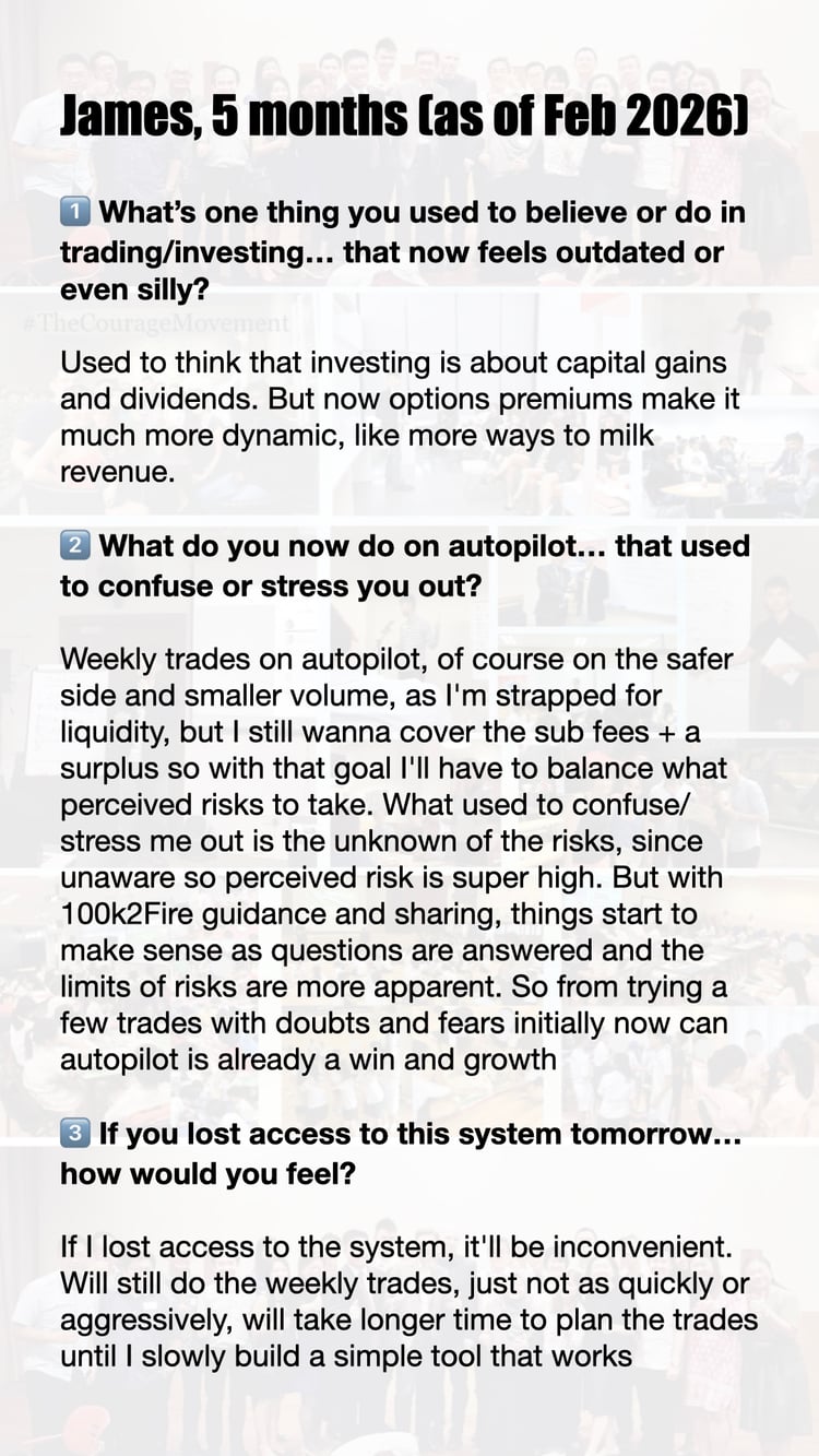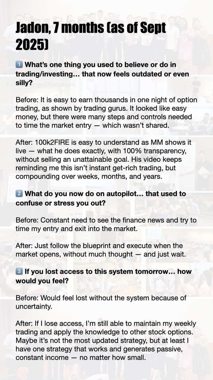 The 100K2FIRE program involves leveraged ETFs and options strategies, which carry inherent risk and volatility. You may lose part or all of your investment. I provide a structured framework for risk management. Market outcomes remain uncertain and suitability depends on your individual circumstances. This is an educational program and not licensed by the Monetary Authority of Singapore. By participating, you accept full responsibility for your financial decisions. Seek independent professional advice if necessary.