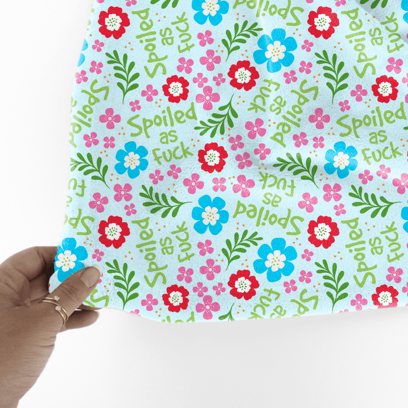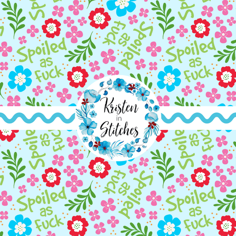 Spoiled as Fuck, with pink red and blue flowers.