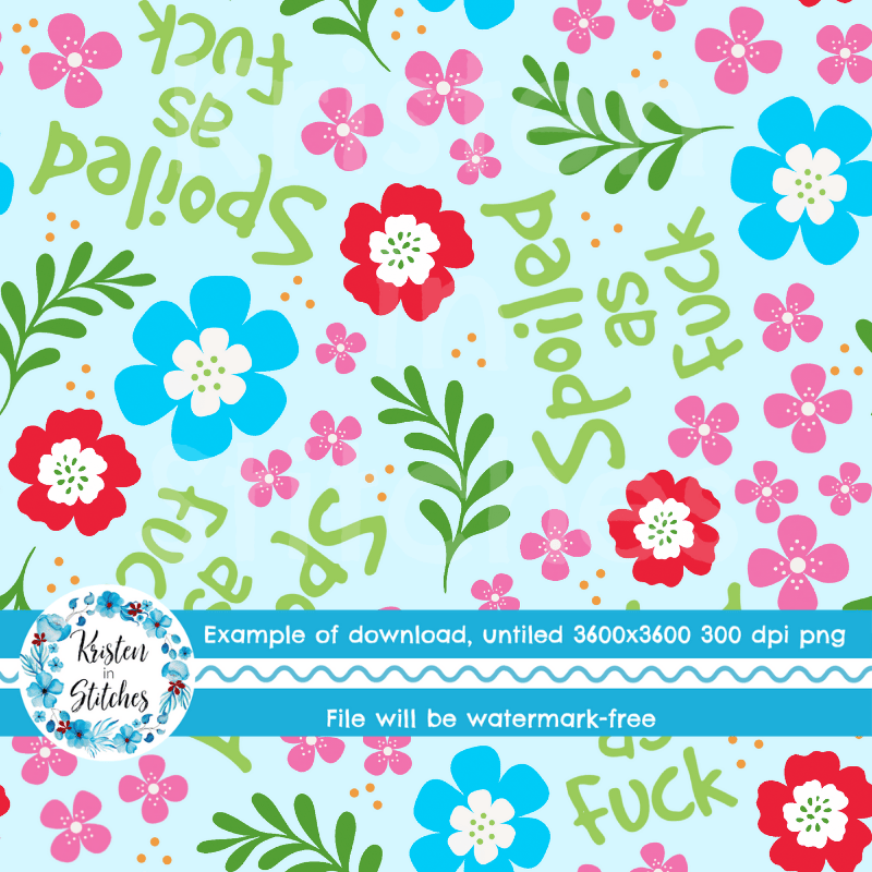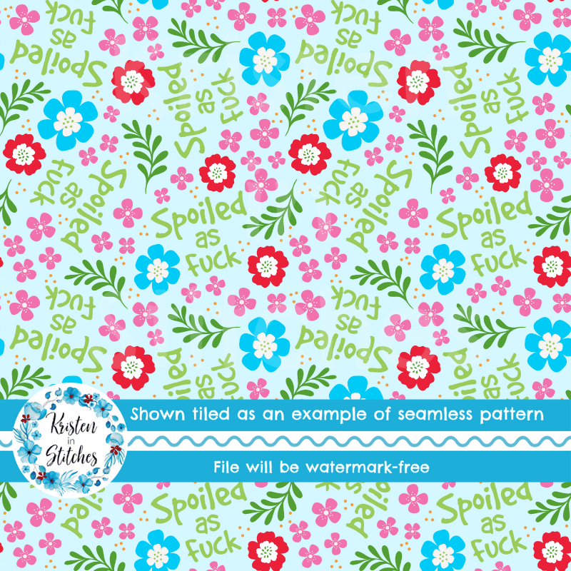 Spoiled as Fuck Swear Word Floral Seamless Pattern, Pretty Profanities