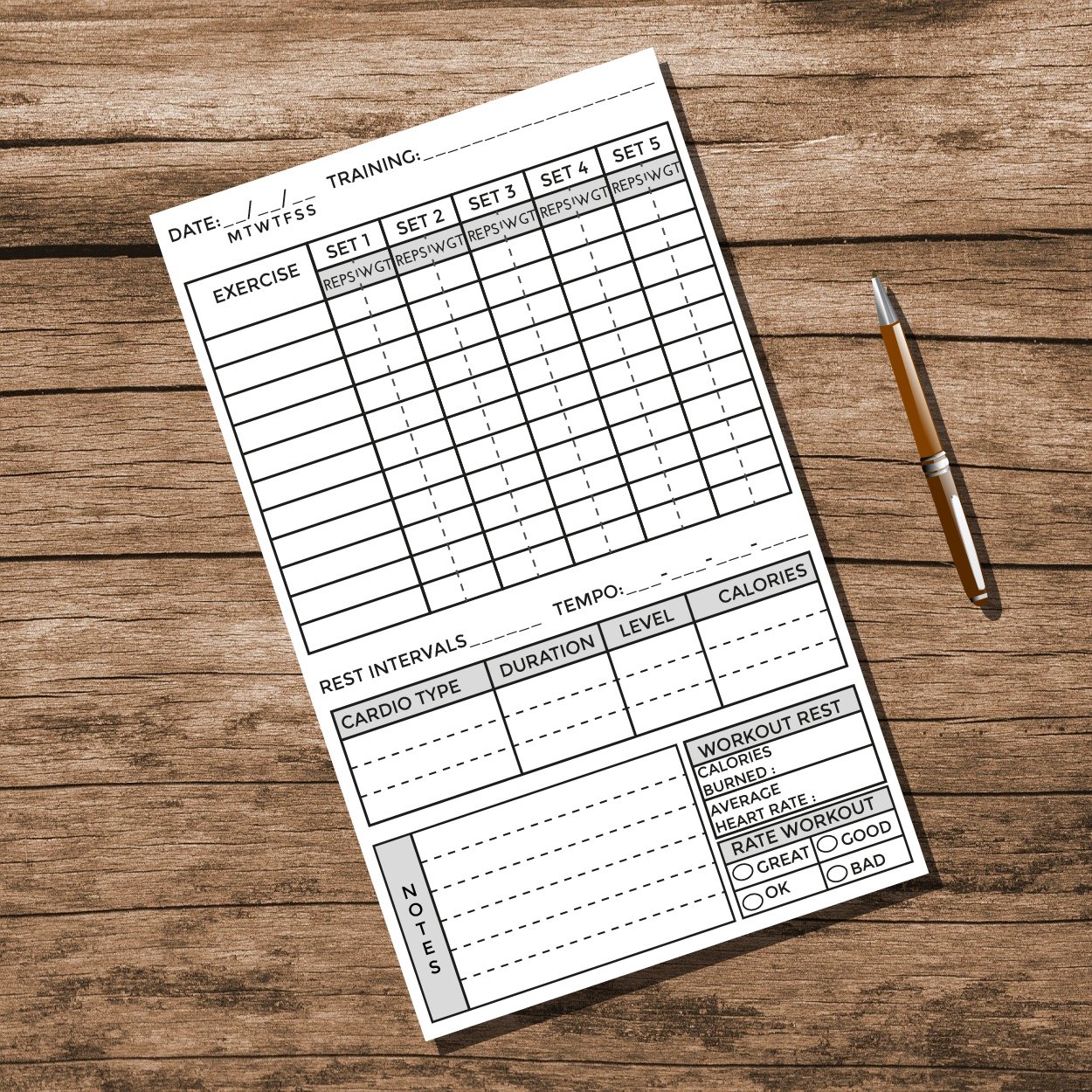 - Notes section for you to write about your Diet, Supplements, and how did the Workout feel