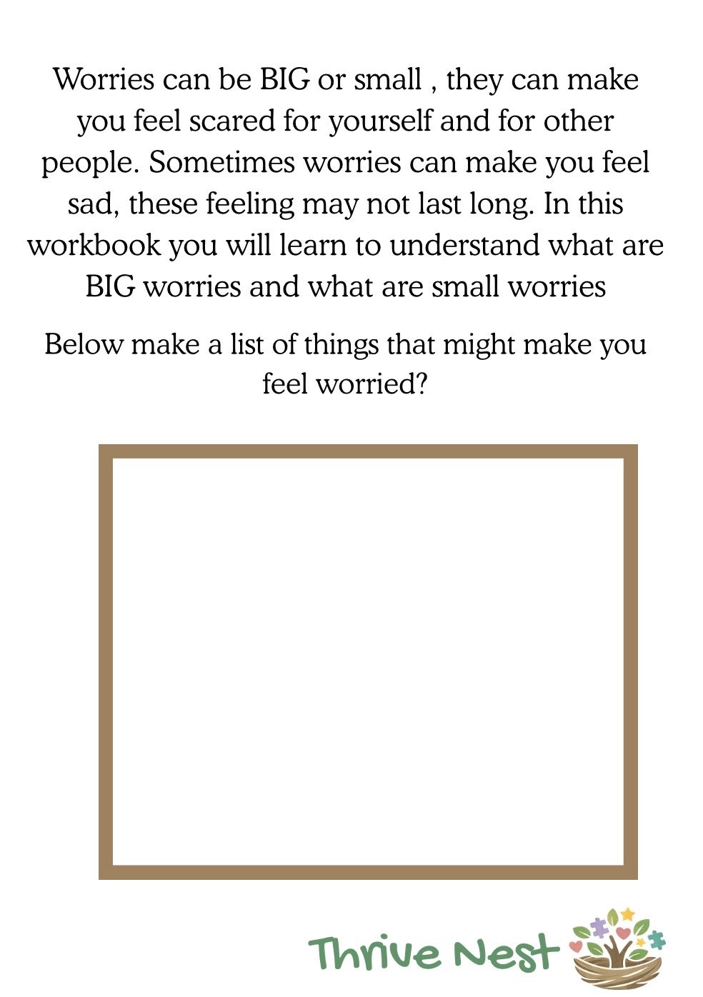 • Space to draw and write worries