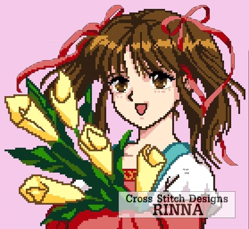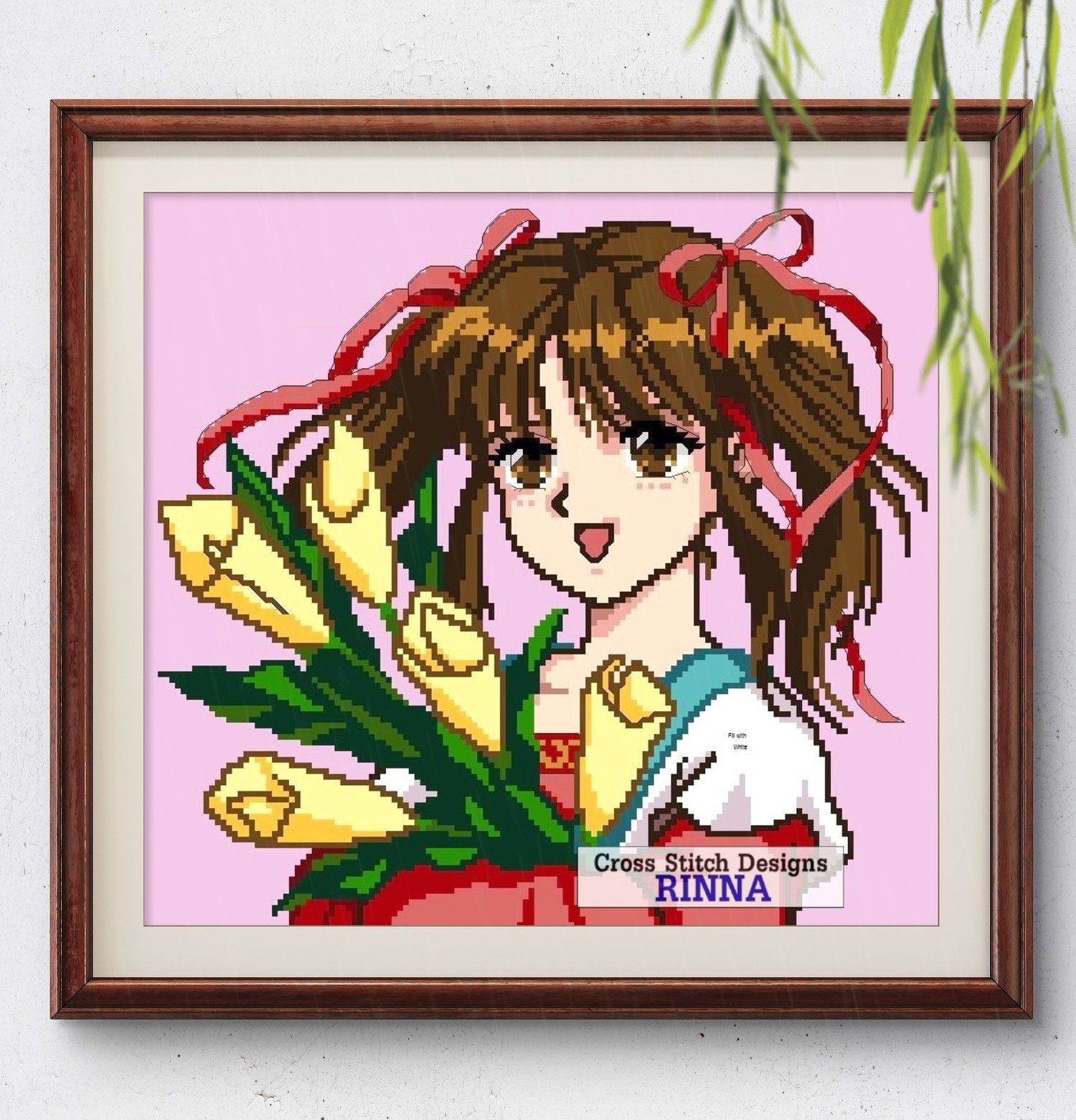 Anime Design Fushigi Yuugi MIAKA's Flowers - Cross Stitch PDF Downloadable Pattern