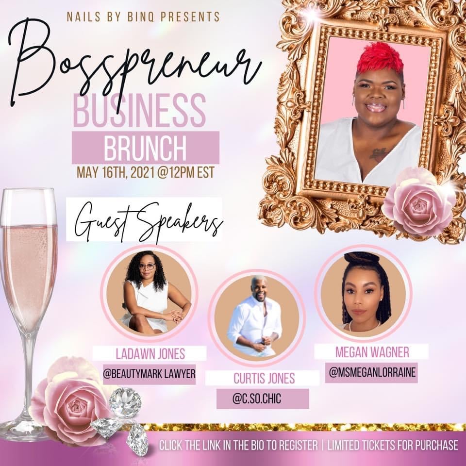 Hey Boss! Join us on May 16th, 2021 as well get together for an amazing event. We will be networking, learning and BOSSING UP! 2021 is the year to manifest your best life. There will be vendors, a business panel & speakers. Early Bird ticket sales will be until 4/23/2021.