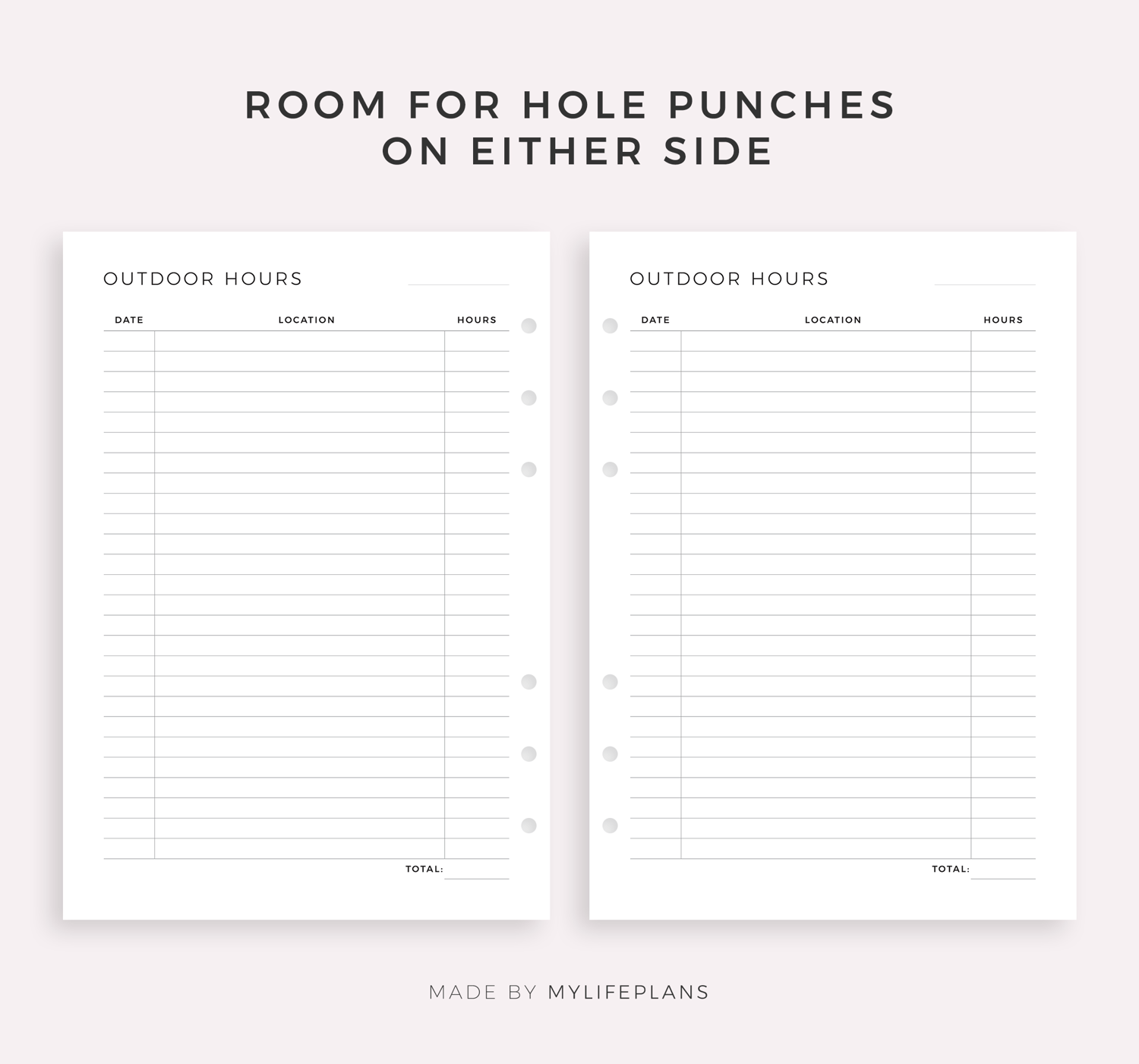 • Space for hole punches on either side