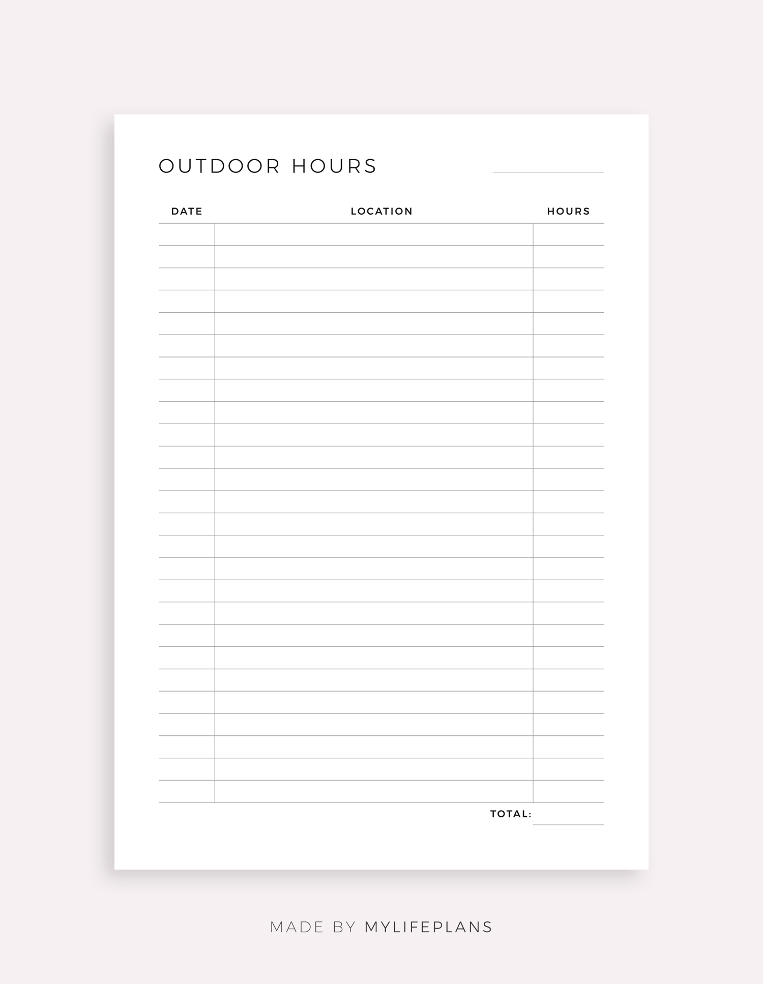 This is a printable uutdoor hours tracker — just download, print, and start using it right away.