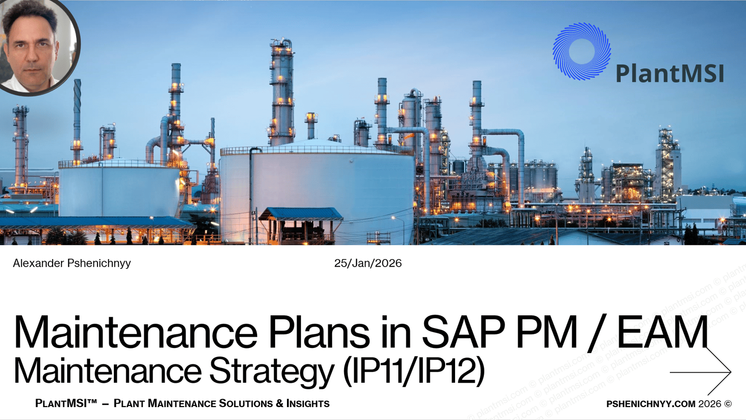 In this detail material, I explain the specifics of setting up the maintenance strategy for Maintenance Plan in SAP PM/EAM with transaction IP11 and some hidden dangers you may want to avoid as an Asset Engineer or Reliability Manager.