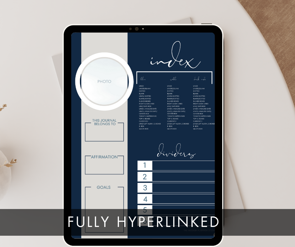 - Fully Hyperlinked: Seamlessly navigate through your journal with ease.