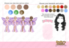four different skin tones, three eye colours and 15 hair colours in one hairstyle)