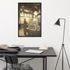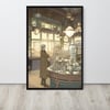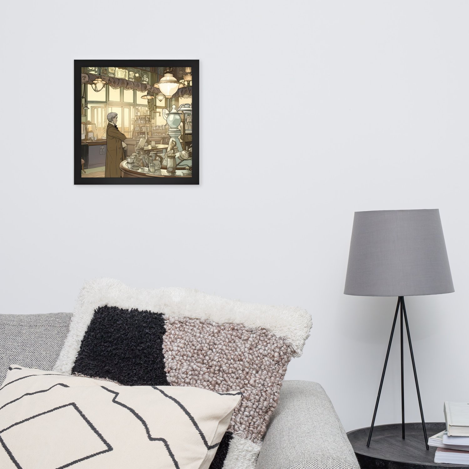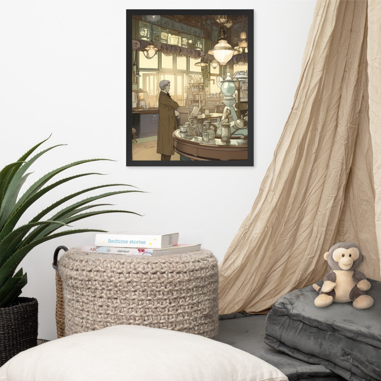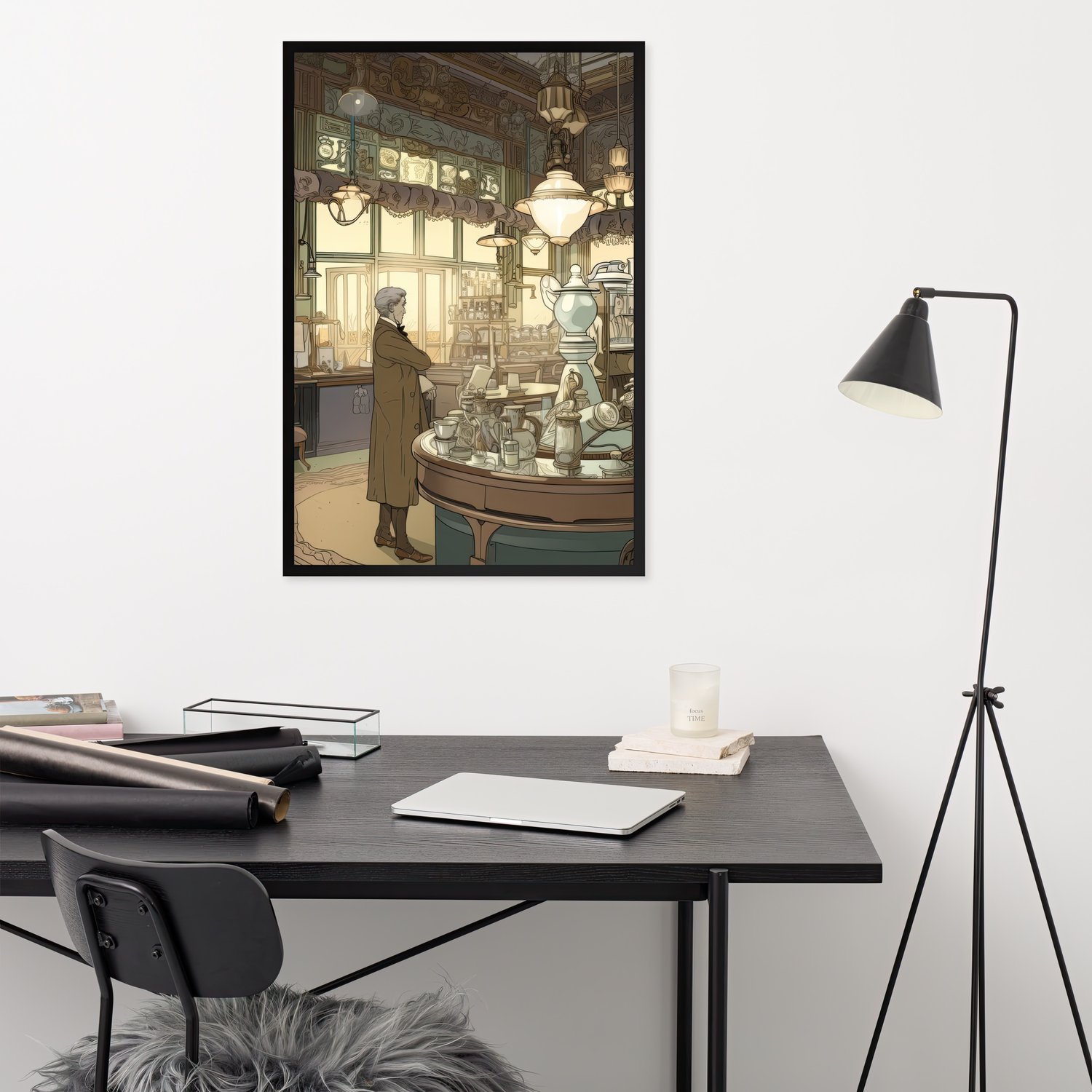 Bring a touch of elegance to your home with this stunning digital illustration of a man waiting for his coffee in a vintage-style cafe. The intricate line work and artful detailing capture the beauty of the scene in a way that will transport you to a charming bygone era.