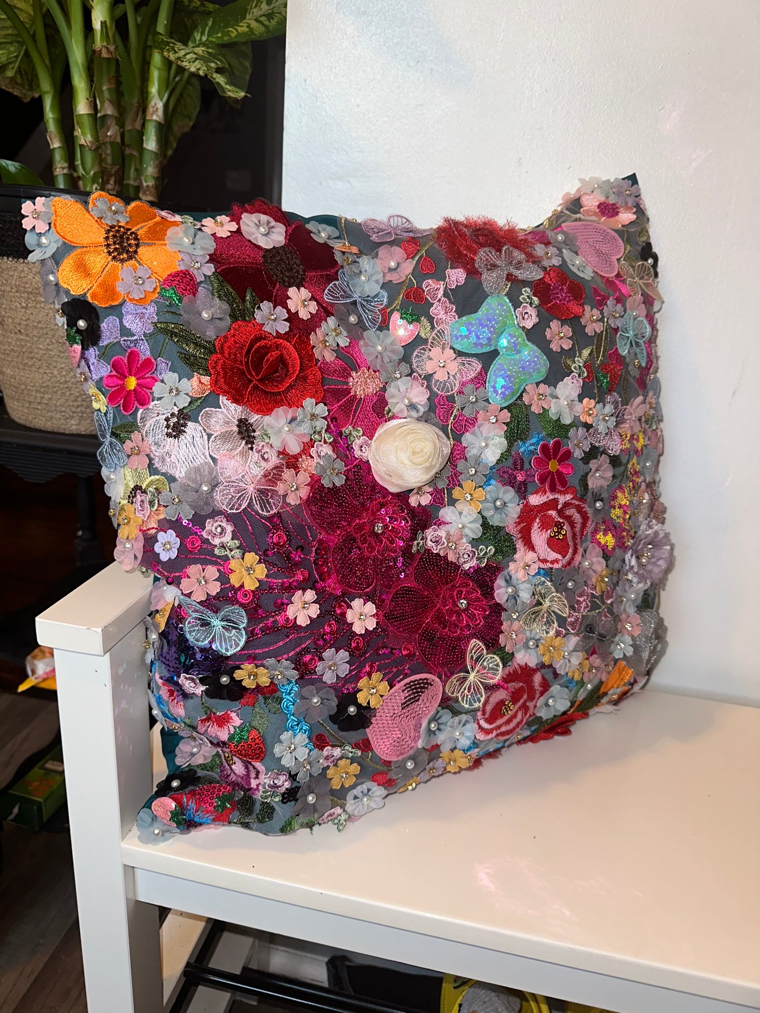 - Hand-Embellished & Original: Each throw pillow is meticulously hand-embellished and crafted with an original design, making every piece a unique work of art.