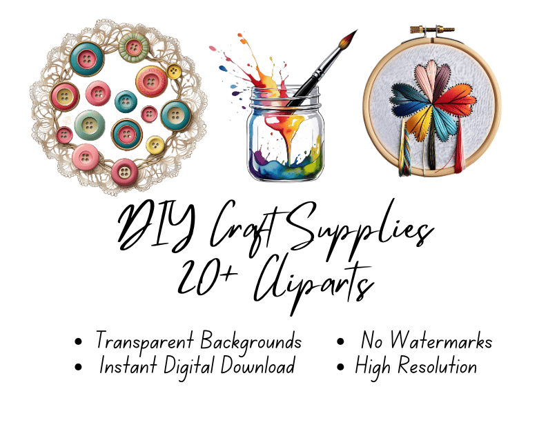 DIY Craft Supplies 20+ Cliparts | Instant Download | High Resolution | Digital Format