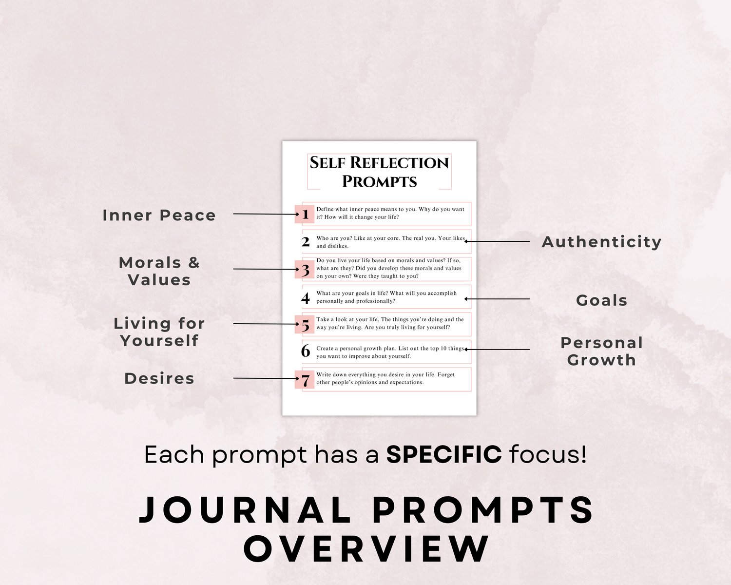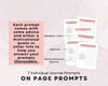 All prompts come with on-page tips and motivation to help you answer the journal prompts more thoroughly.
