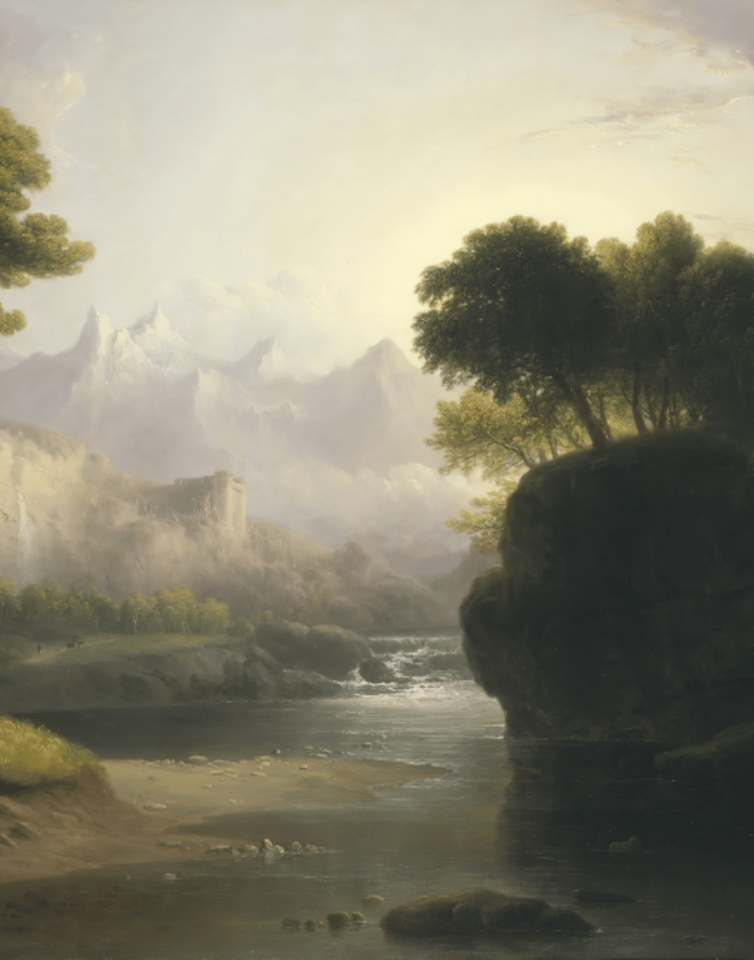 River Landscape, Forest Landscape, Mountain Landscape, Vintage River Nature Art, Beautiful Nature, Painting
