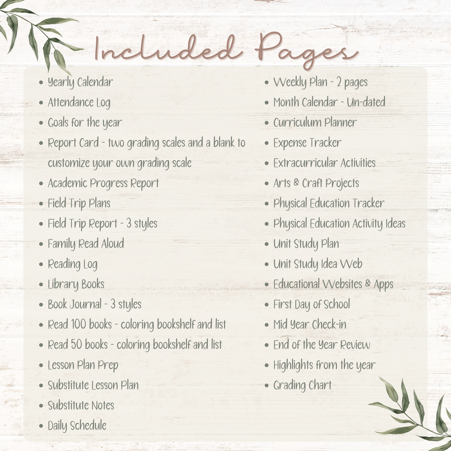Introducing our comprehensive printable homeschool planner, designed to simplify and enhance your educational journey! This planner is packed with a variety of useful pages, ensuring that you have everything you need to organize and track your homeschooling experience.