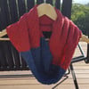 This textured Cowl or Scarf is worked in a diagonal rib stitch, and has a contrasting colour section in the centre.