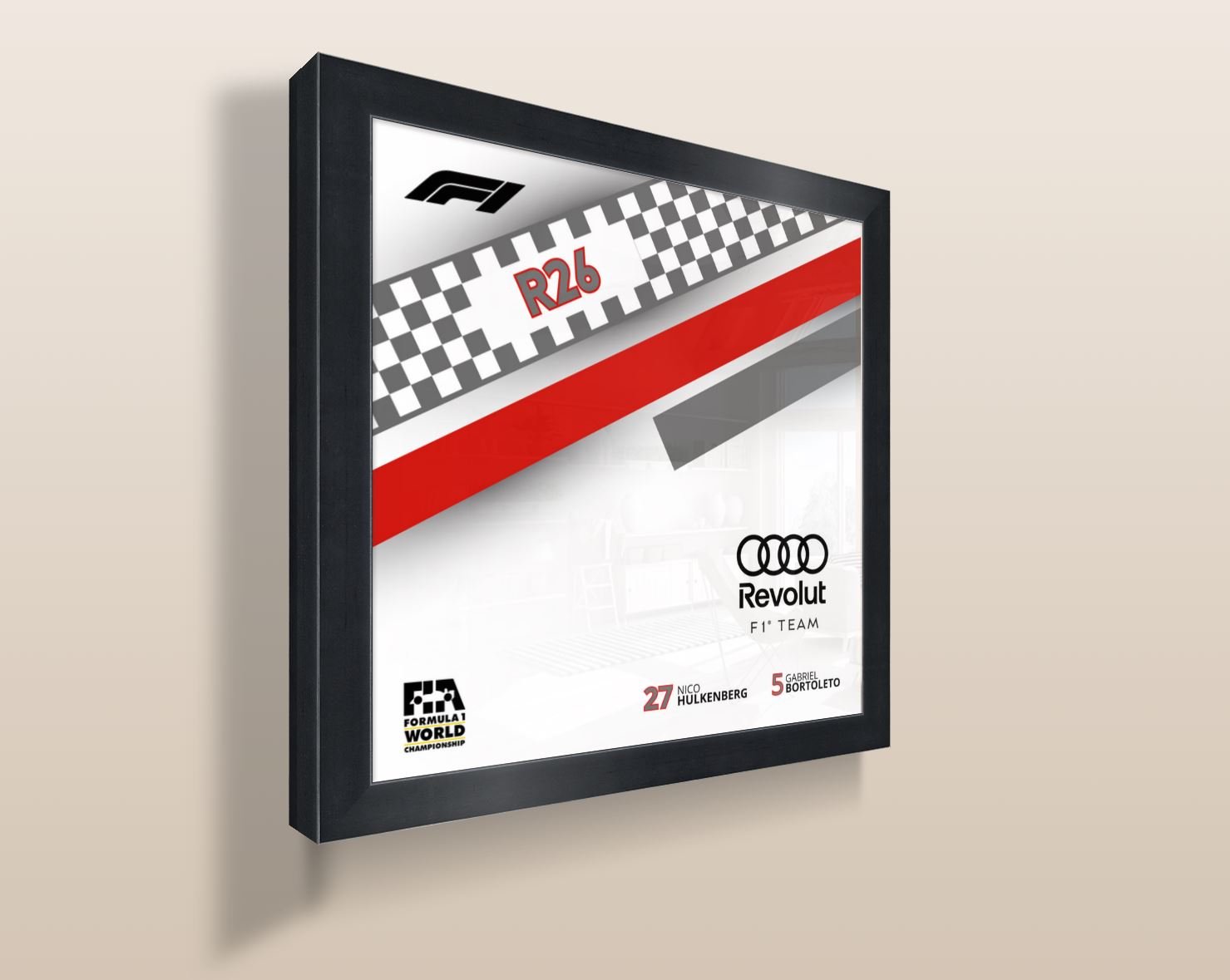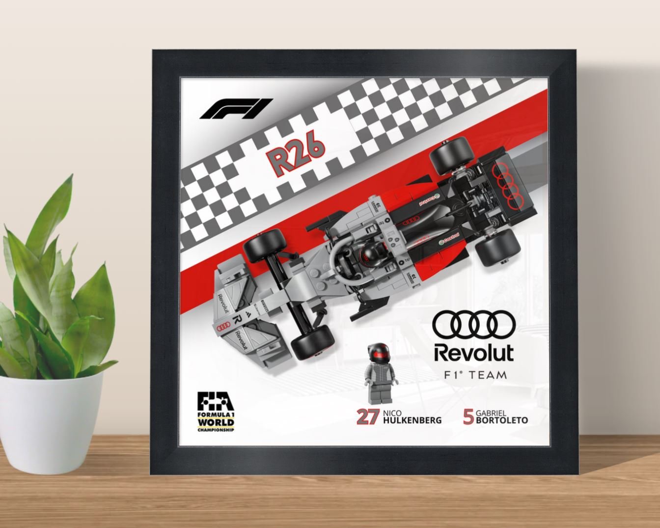 Digital poster compatible with LEGO Speed Champions Audi Revolut R26, specially designed to showcase your Formula 1 model in a modern and premium display.