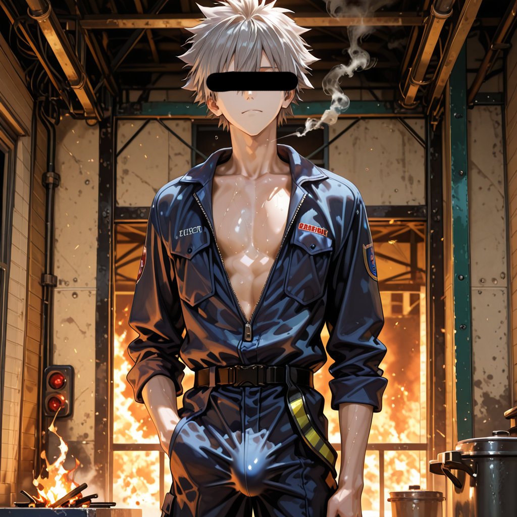 The theme is ""work scenes"" of firefighters, and the charm of the masculine characters of the firefighters is boldly expressed.