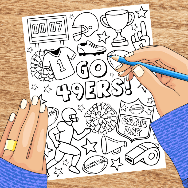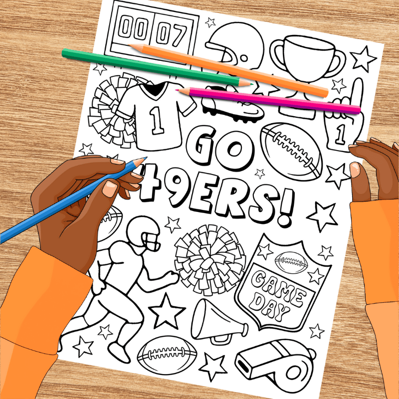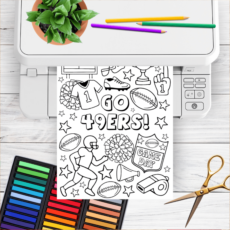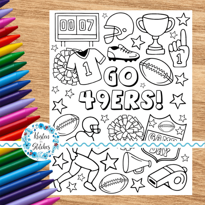 Go 49ers! Football Team Coloring Page, Printable 8.5x11 Paper, PDF & PNG File, Game Day Crafts, San Francisco