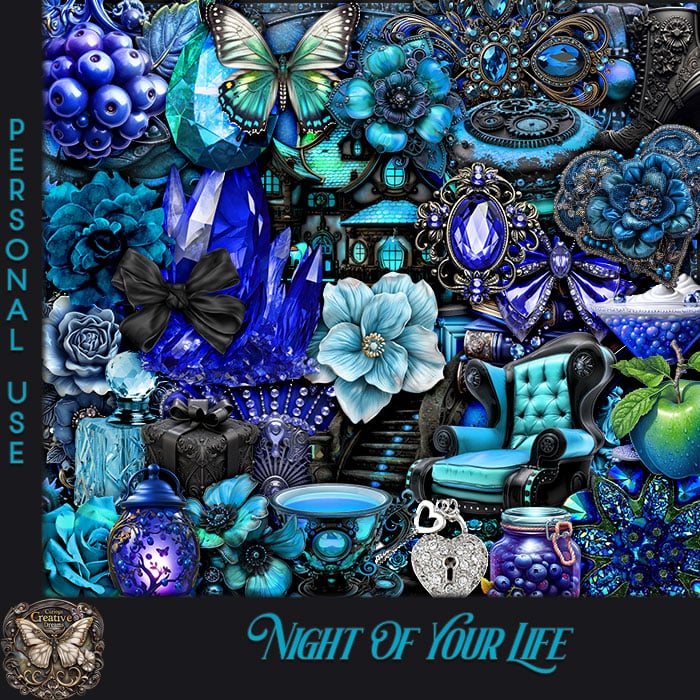 Night Of Your Life Comes with 100 Elements , 10 Frames and 20 Papers , AI Generated Included. Personal Use Only