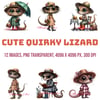 Transform your creative projects with our "Cute Quirky Lizard Clipart" collection! This digital pack includes 12 unique and whimsical images, each in PNG transparent format at a high resolution of 300 dpi and 4096 x 4096 px.