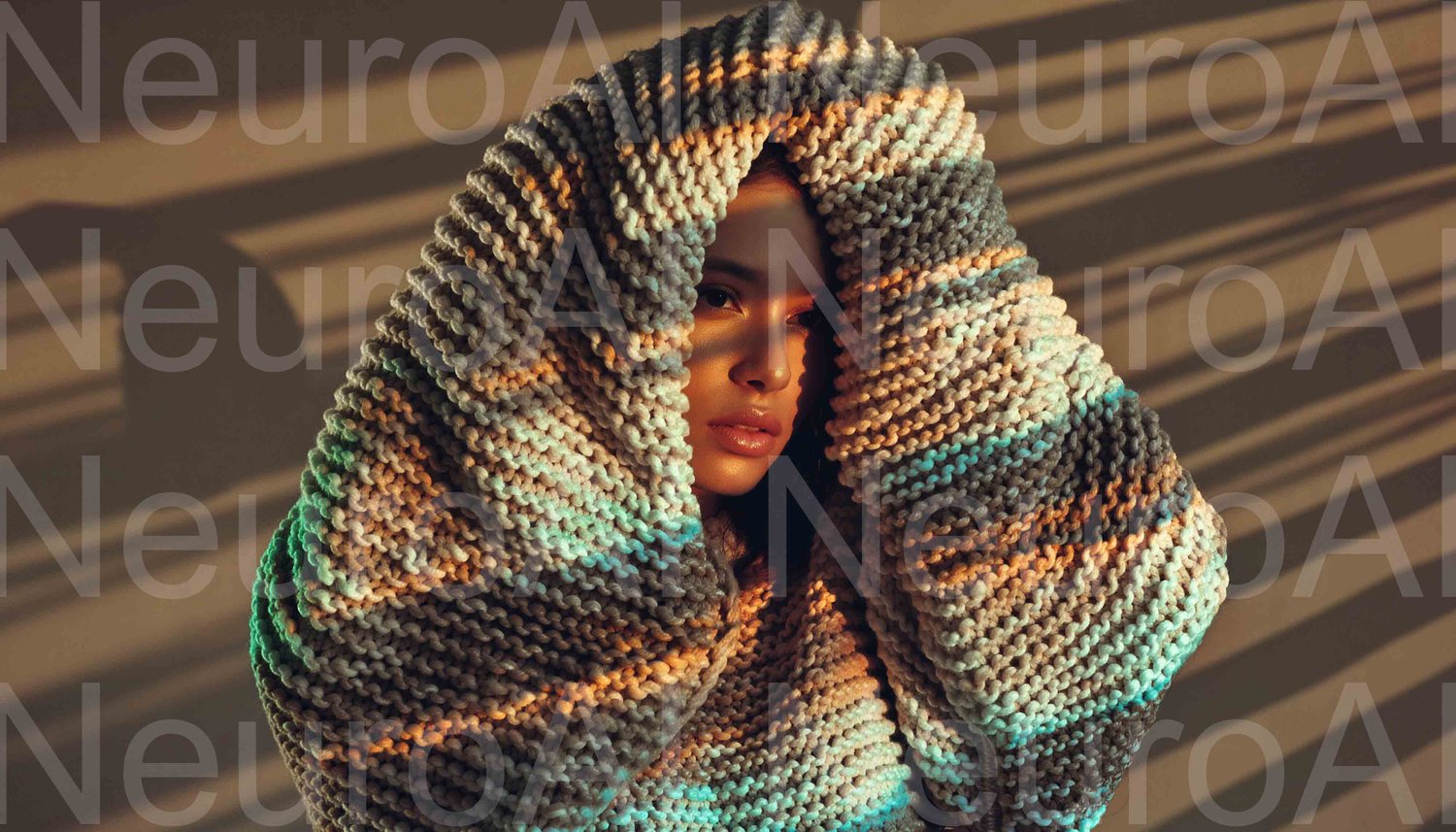 Stylish woman wrapped in cozy knitwear fashion