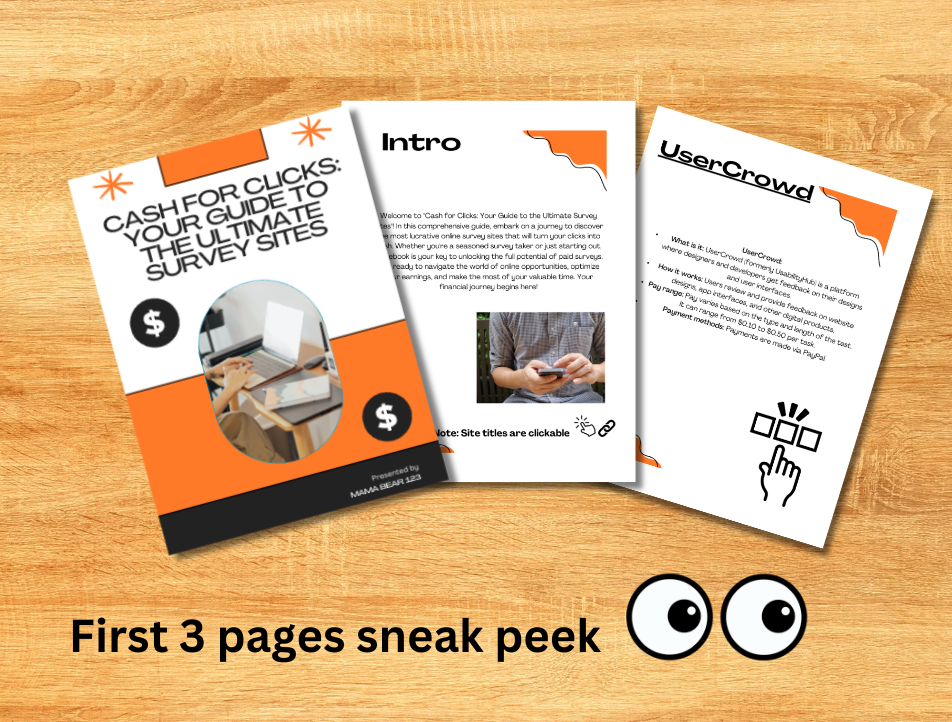 Are you ready to turn your spare time into cash? Look no further than our comprehensive "Cash for Clicks: Your Guide to the Ultimate Survey Sites" eBook, your ultimate guide to discovering the top-paying survey sites on the internet. This downloadable PDF is packed with valuable insights, tips, and strategies to help you maximize your earning potential by taking surveys online.