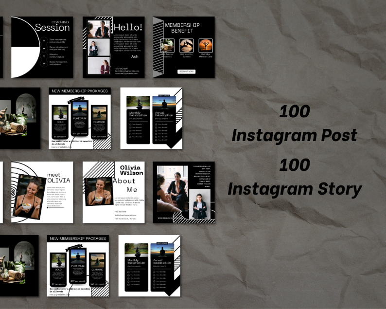 You will get a PDF file containing the access link to Canva Templates that include 2 link for 100 Instagram Post and 100 Instagram Story