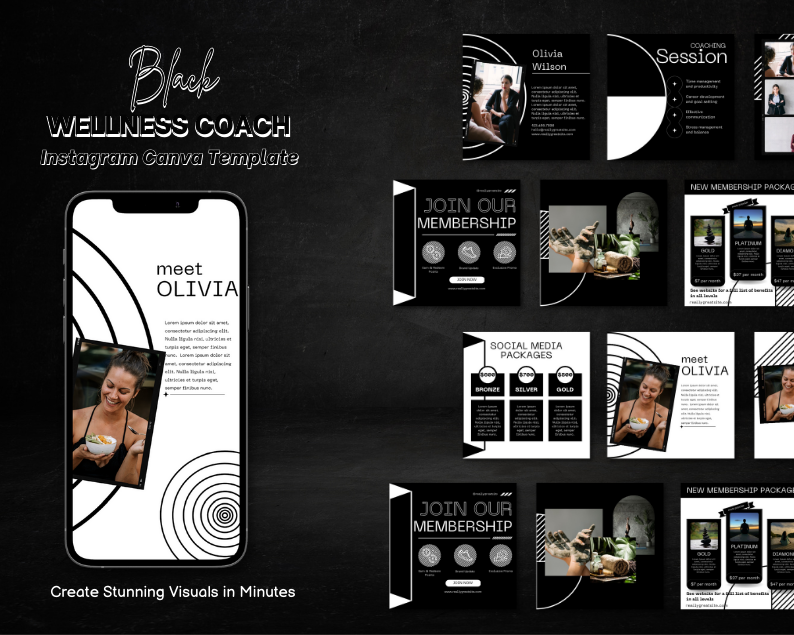 Black Social Media Canva Template for Wellness Coach, Design Like a Pro and Engage Your Audience