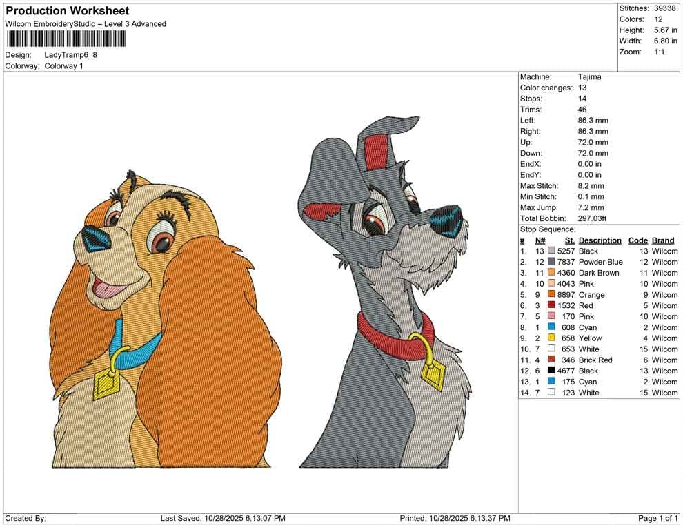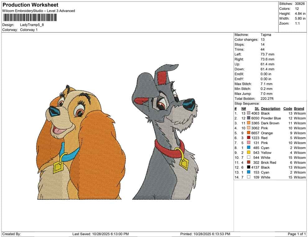 Lady Tramp embroidery design