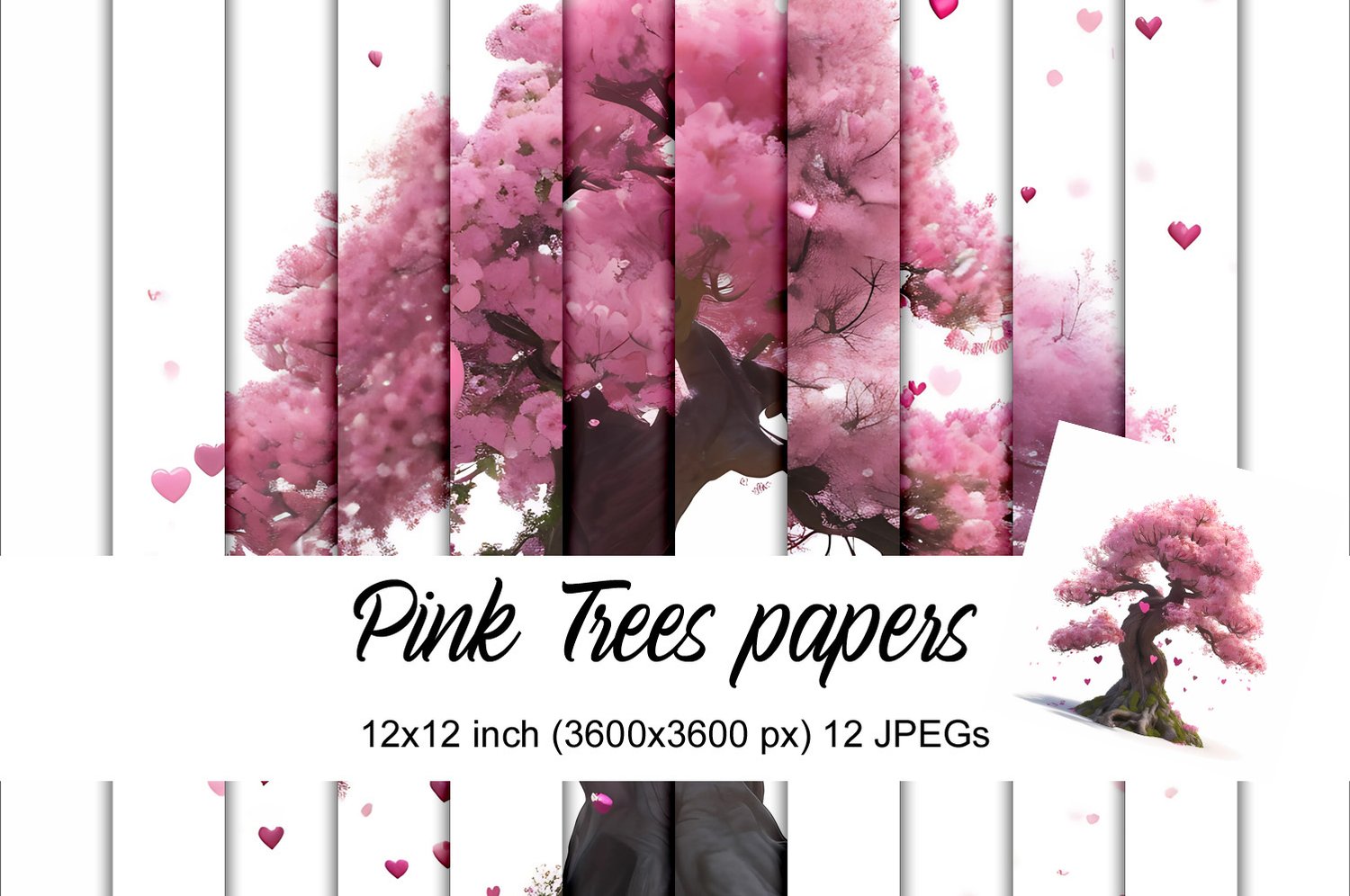 Each digital paper captures the beauty of blooming trees with floating hearts, making them ideal for a wide range of projects like wall art, scrapbooking, greeting cards, journals, digital artwork, and more.