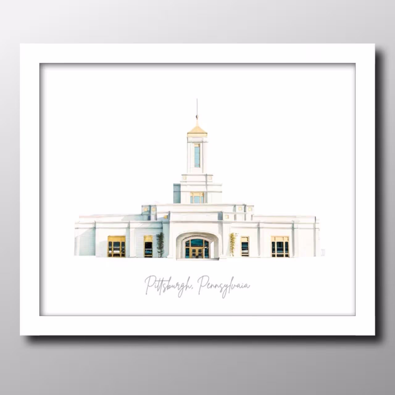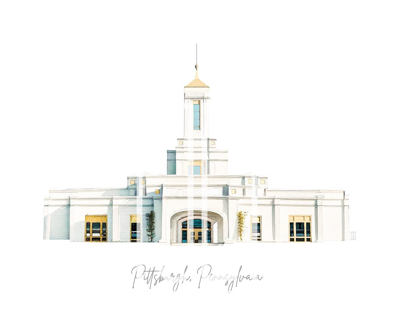 Pittsburgh, Pennsylvania LDS Temple Watercolor Print | Physical Print | Latter-Day Saint Temple | Mormon Temple Art | Temple Painting