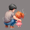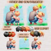 Daddy & me, father and son or daughter. 2 complete base files + hair clipart, plus FREE background. Ideal Father’s Day. Sublimation or print. 13 PNG