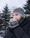 This pattern includes instructions to work a knitted beanie & pair of muffatees using the Fair-Isle colourwork technique.