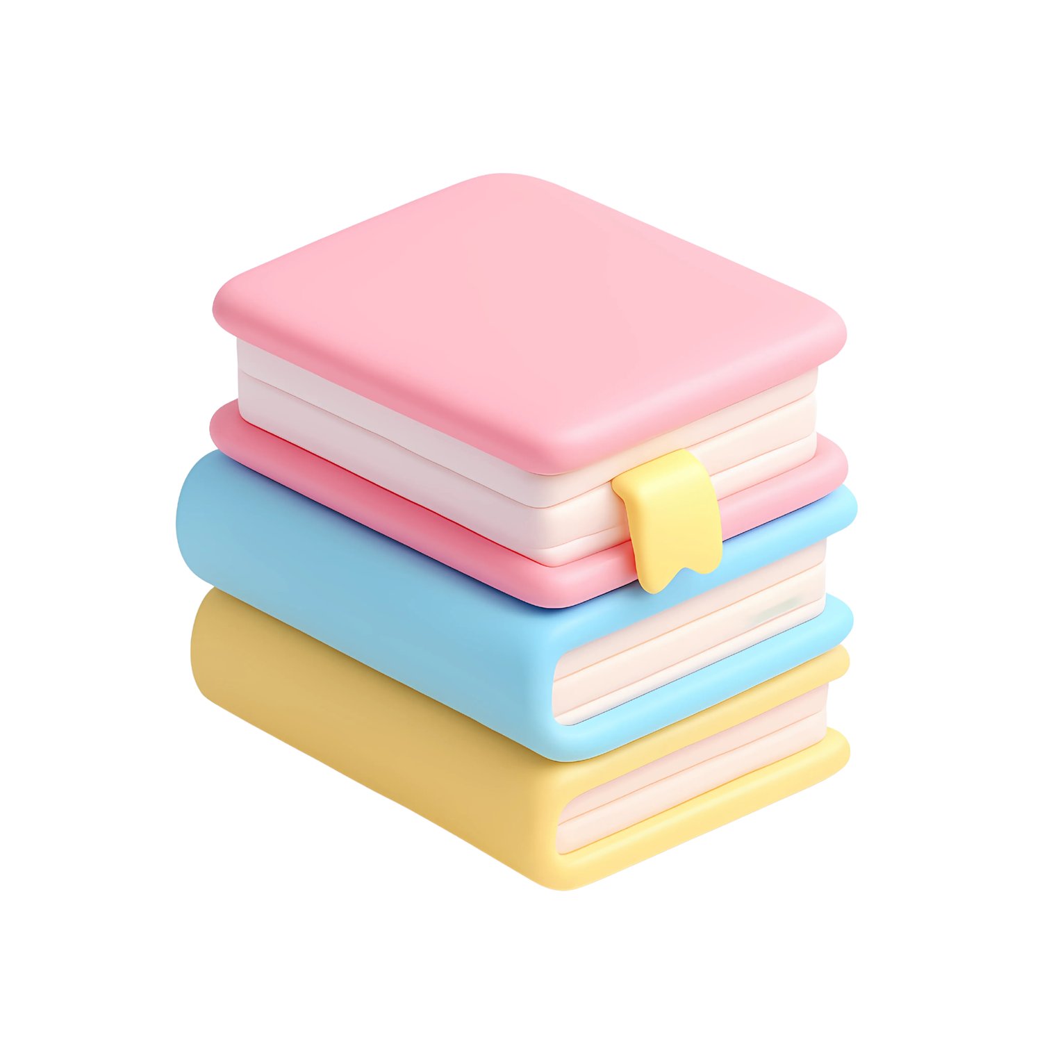 Cute 3D Cartoon Books Stack in Pastel Colors