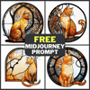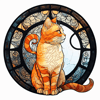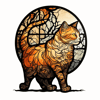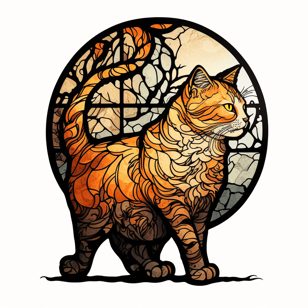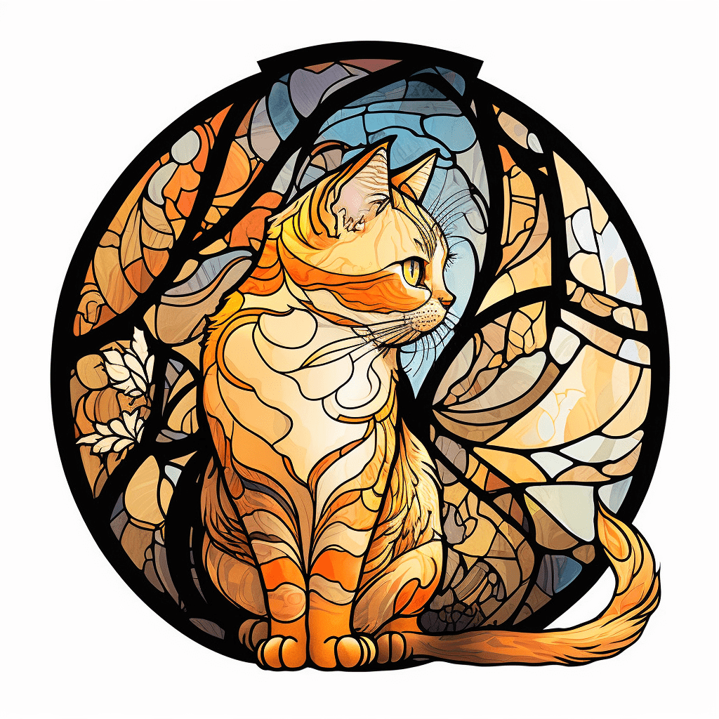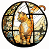 Context: stained glass, cat, feline, animal, pet, orange, fantasy, storybook, fairytale, watercolor
